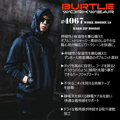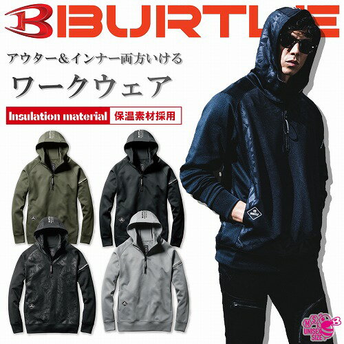 ■ネックを高めに設定し、フードを被るとバラクラバのように顔周りを覆う事ができるハーフジップフーディ ■フードトップにバートルロゴを配し、身頃両サイドにポケットを採用。