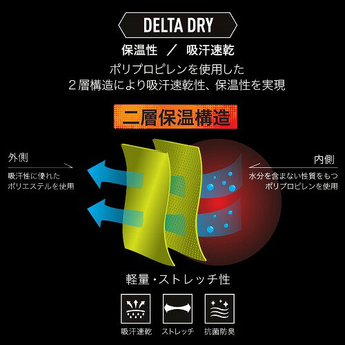 ■ドライな着用感が持続する吸汗速乾加工。